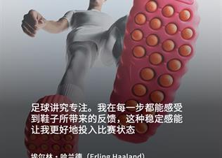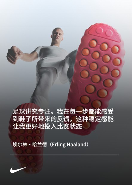 “足球讲究专注。”签约运动员埃尔林·哈兰德(Erling Haaland)说道——在过去五年间,他是数百位参与耐克 Mind 鞋款测试的运动员之一。“我在每一步都能感受到鞋子所带来的反馈,这种稳定感能让我更好地投入比赛状态。”